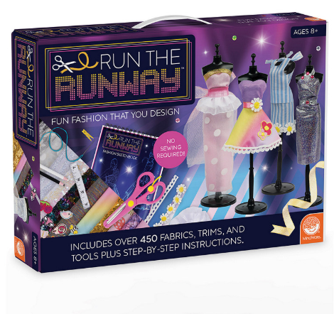 Give the gift of design for the young fashion plates in your life. This set looks like fun for moms too, complete with more than 450 pieces of fabric, trim, dress patterns, gems, sketchbook, mini mannequins and other tools. It comes with step-by-step instructions and sewing is not required. Recommended for ages 8 and up. $50.99.