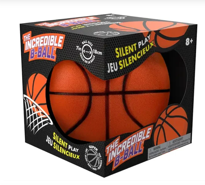 Give your children the joy of playing basketball while keeping sanity for the parents and caregivers. This ball bounces quietly! This foam ball with a nerf-like exterior and inflated core by Incredible Group can bounce either indoors or outdoors with just faint sounds. Recommended for ballers ages 8 and up. $14.99.